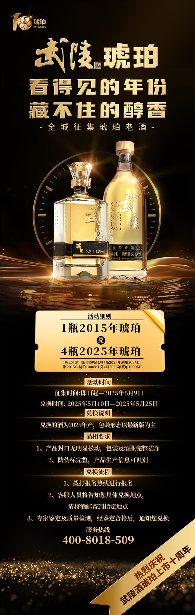十年珍藏,四倍回馈 武陵酒发出“武陵琥珀老酒回收”征集令