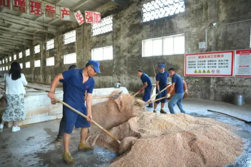 5月7日,由十余家媒体组成的探访团走进鹿邑宋河生产基地。焕然一新的厂区规划令人瞩目:新修的10公里标准化道路贯穿厂区,重新规划的酿造、制曲、储酒等功能区井然有序。在窖池区,126个酿酒班组正进行传统装甑作业,1万余口窖龄达57年的老窖池群蔚为壮观,酿酒师傅们沿用古法抬桶运酒方式,再现白酒行业传统工艺图景。