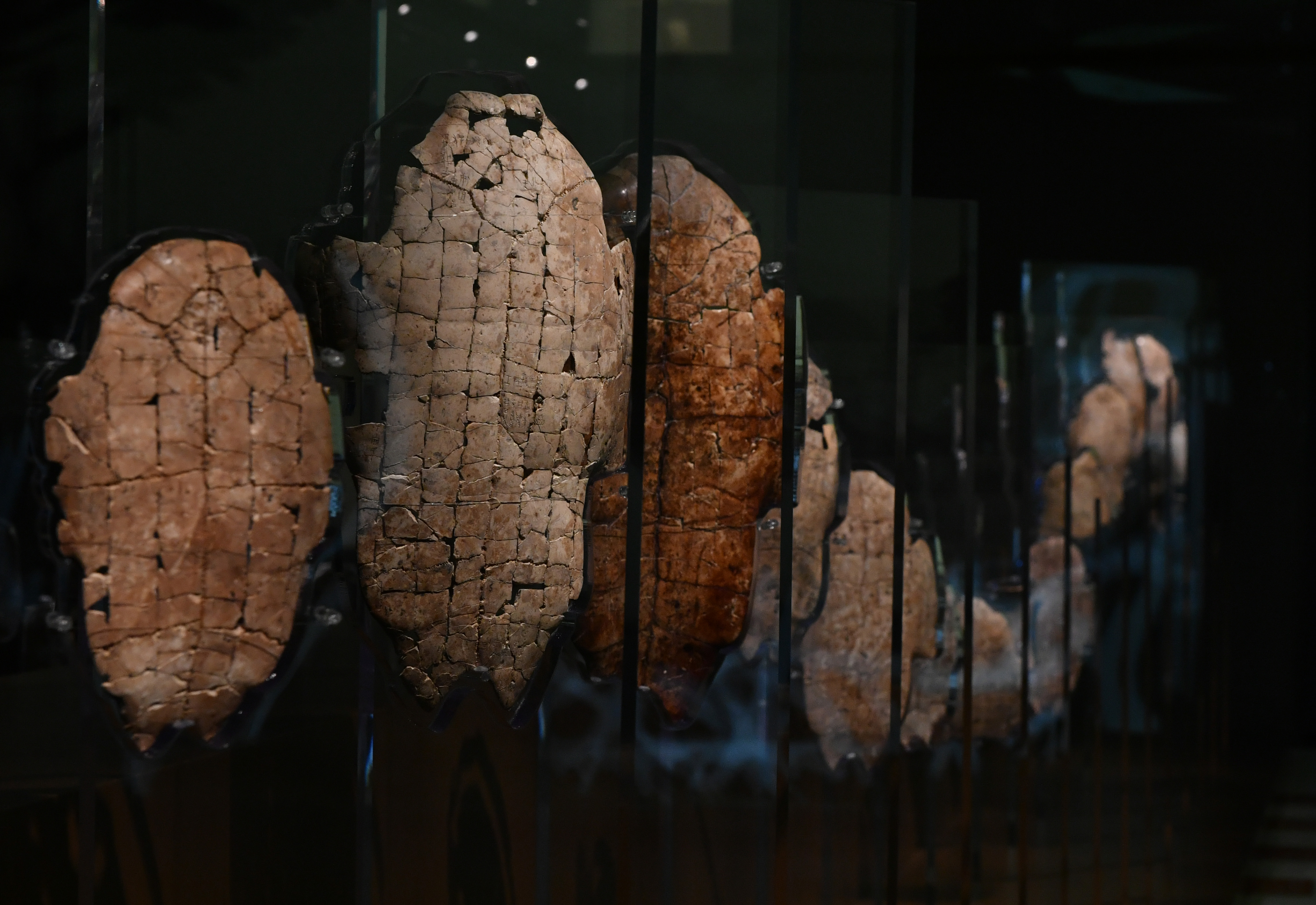 在殷墟博物馆新馆拍摄的考古发掘出土的甲骨文骨片