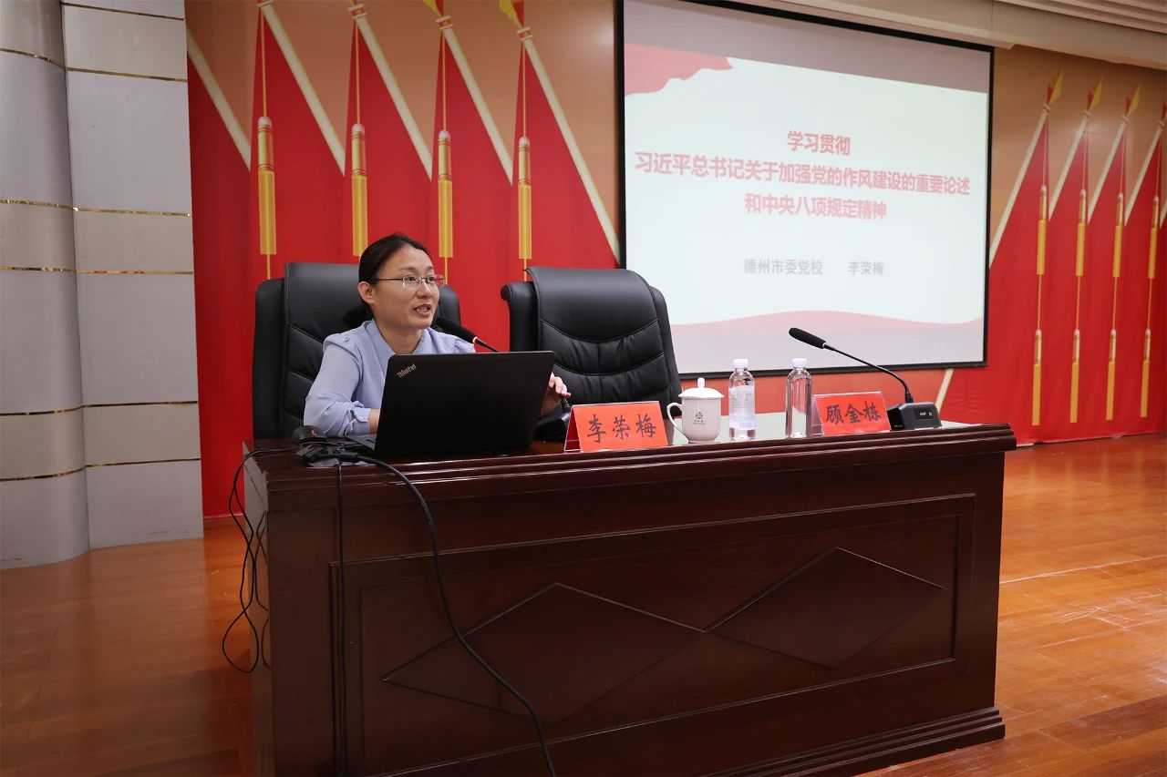 为深化纪律建设,集团党委特邀德州市委党校党史党建教研部主任李荣梅教授,为与会人员作了一堂题为《习近平总书记关于加强党的作风建设的重要论述和中央八项规定精神》的专题辅导。李教授凭借丰富的教学经验,围绕“新时代党的作风建设”这一主线,从阐释概念内涵、强调重要意义、明确工作重点和提出实施路径四个方面进行了深入浅出的讲解,系统解读了习近平总书记关于作风建设重要论述的深邃内涵,结合中央八项规定精神实践要求,通过“四风”典型案例剖析,为党员干部划出了纪律“红线”,推动警示教育入脑入心,引导党员干部知敬畏、存戒惧、守底线。