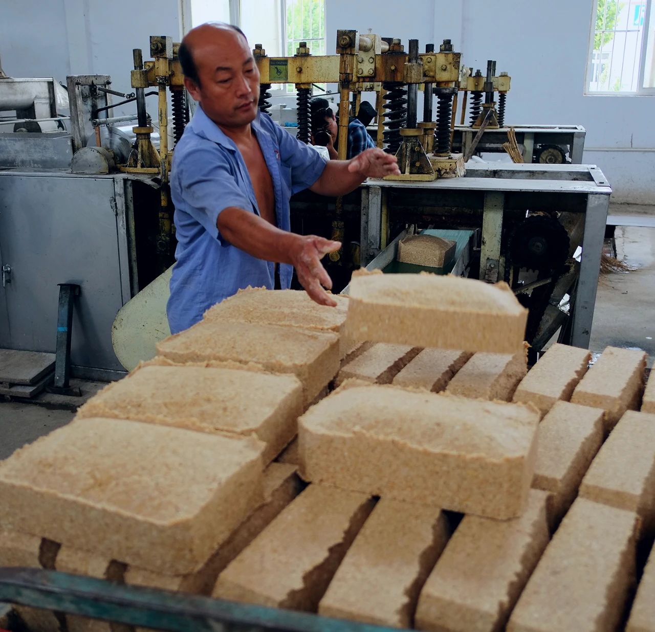 6月的古贝春曲房,制曲师傅钱胜昌将耳廓轻贴曲坯。60℃的灼热扑打在他的脸颊,曲块深处传出细密的“沙沙”声。“听见没?这是米曲霉在啃噬淀粉。”而在他不远处的制曲车间里,传送带正将润好的麦粒送入粉碎机,粉碎好的麸粉经加水压制成型,形成北方特有的“包包曲”。传统经验与机械设备在此刻交响,奏响北派浓香的灵魂序曲。