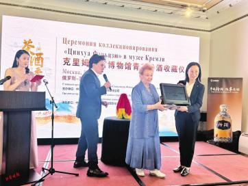 数百年的万里茶道上清脆的驼铃声在茫茫的沙漠中余音悠扬回荡,浓郁厚重历史的古商道沿途依然四溢着汾酒独特的清香! 如今,来自东方文明古国的新晋商携带着自有的清香,来到万里茶道关键节点——莫斯科,深情回忆和倾述着数百年来在欧亚大陆的无数次的相会、邂逅与碰撞、融合…… 7月9日,由山西杏花村汾酒集团主办,山西日报传媒集团、俄罗斯晋商总商会承办的“2025茶道酒香汾酒品牌推广活动”俄罗斯系列活动在莫斯科举行。 在中国汾酒&俄罗斯伏特加“国酒对话论坛”上,山西杏花村汾酒集团将一坛青花汾酒50移交克里姆林宫博物馆收藏,为加强中俄传统文化交流、中俄酒类酿造技艺共鉴、酒类品牌国际化发展注入强劲动力与深厚内涵。 九旬库里科娃深情寄语汾酒 7月9日下午,“2025茶道酒香汾酒品牌推广活动”莫斯科系列活动迎来最激动人心的时刻——克里姆林宫博物馆青花汾酒收藏仪式在莫斯科大都会酒店举行。 在活动现场,主席台中央的桌子上,一个“身材高大”的酒坛,用中国传统婚礼习俗中常见的红盖头遮盖着,犹如待嫁新娘等着心上人掀起盖头,与众人见面;现场前来参加活动的嘉宾也翘首期盼,欲睹这坛青花汾酒的“芳容”。 当地时间15时30分,克里姆林宫博物馆青花汾酒收藏仪式拉开帷幕。“Добрыйдень!(音同“多布雷坚”,下午好!)”山西杏花村汾酒厂股份有限公司总工程师韩英首先登台,用俄语向在座的嘉宾打招呼,现场气氛顿时活跃起来。“我们跨越万里,带来的是中国白酒的瑰宝——汾酒。它不仅仅是一杯美酒,更是中华五千年农耕文明的活态传承,是流淌在中国人血脉中的文化基因。汾酒拥有6000年不间断的酿造史,被誉为‘中国酒魂’,是中国清香型白酒的鼻祖,和国家白酒标准的制定者。1915年,汾酒就在巴拿马万国博览会上荣获最高奖——甲等大奖章,是中国白酒唯一、最早的国际荣誉获得者。”韩英表示,汾酒集团将这份饱含着中国情谊与文化底蕴的佳酿,郑重地收藏于克里姆林宫博物馆,希望它能成为中俄文化交流的永恒见证,让汾酒的故事在这片土地上代代相传。“接下来,请俄中友协领导库里科娃讲话,为我们展望中俄两国文化交流的美好未来。”主持人话音刚落,就坐前排的一位老人起身,精神矍铄地走上主席台。她就是俄中友好协会第一副主席加林娜·维尼阿米诺夫娜·库里科娃。 库里科娃今年已90岁高龄,在俄中友协工作68年,始终奔走在中俄民间外交第一线,是中俄关系中许多重大历史事件的见证者。2019年9月17日,中国国家主席习近平签署主席令,授予库里科娃友谊勋章。“山西太原我很久以前就知道。山西太原是一座历史名城,山西的古建筑非常有名,在俄中友协的展厅里展出了五台山的一座古建筑图片,我们对山西还是了解的。山西是一座煤都,山西在抗日战争中起到重要的作用。”库里科娃饱含深情地说:“很高兴我能受邀参加推介青花汾酒的活动。汾酒诞生于山西杏花村这片响亮的土地。在中华人民共和国成立的国宴上就有汾酒,它的清香有别于其他白酒。希望通过今天的收藏仪式,这款白酒能在俄罗斯传扬开来,让更多俄罗斯家庭在庆典活动或聚会中品尝到这份来自东方的美酒,让汾酒的故事走进莫斯科、俄罗斯的千家万户。”库里科娃提议:“在这样一个美丽的日子里,让我们举起盛满汾酒的酒杯,为大家的相聚、为这样的活动而庆祝。” 克里姆林宫迎来首款中国白酒 在中俄两国嘉宾的共同见证下,克里姆林宫博物馆代表维亚切斯拉夫先生、叶卡捷琳娜女士登台向韩英颁发了克里姆林宫收藏青花汾酒的证书。随着维亚切斯拉夫与韩英共同将摆放在主席台中央桌上的那坛青花汾酒瓶体上的红盖头轻轻褪去,现场期待已久的人们终于有了“答案”—— 这是一坛4升装汾酒青花50!汾酒集团最顶级的产品。 青花汾酒50,瓶身布满青花瓷纹,勾勒出中国传统美学的神韵;瓶内历经岁月沉淀的酒体,散发着清香纯正的独特风味。 这坛青花汾酒50从中国山西启程,跨越山河,来到俄罗斯,是凝聚中国千年酿酒智慧的“中国酒魂”,是汾酒的代表之作,更以跨越时空的姿态,承接起晋商开辟的万里茶道历史记忆——300年前,晋商从福建武夷山启程,经蒙古草原抵达俄罗斯,以驼队为载体将茶叶、汾酒等货物输往欧亚大陆;300年后,青花汾酒作为文化使者,再次沿着万里茶道——“东方多瑙河”般的国际商道,不仅成为中俄文化交流的永恒见证,更是中俄两国在新时代携手共进、文化交融的新起点。 在热烈的掌声中,维亚切斯拉夫与韩英合力将这坛青花汾酒50小心翼翼地托起,从不同的角度向众人进行展示。维亚切斯拉夫代表克里姆林宫博物馆郑重接收下这份承载着万里征程与深厚情谊的珍贵礼物。 这份礼物,不仅是中国白酒文化的缩影,更是中俄两国在新时代携手共进、文化交融的新起点。随着这坛青花汾酒50在克里姆林宫博物馆的收藏和陈列,将为更多俄罗斯朋友打开一扇了解中国白酒文化源远流长的窗口,透过它更加深切地感受汾酒跨越万里而来的诚意与热情,传递中俄两国跨越山海的深厚友谊! 为表达来自晋商家乡人民的深情厚谊,韩英代表汾酒集团向库里科娃赠送一块“茶道酒香”汾酒品牌推广活动纪念版定制青砖茶及山西汾酒750毫升丝绸之路国际版白酒。 据介绍,汾酒750毫升丝绸之路国际版白酒是汾