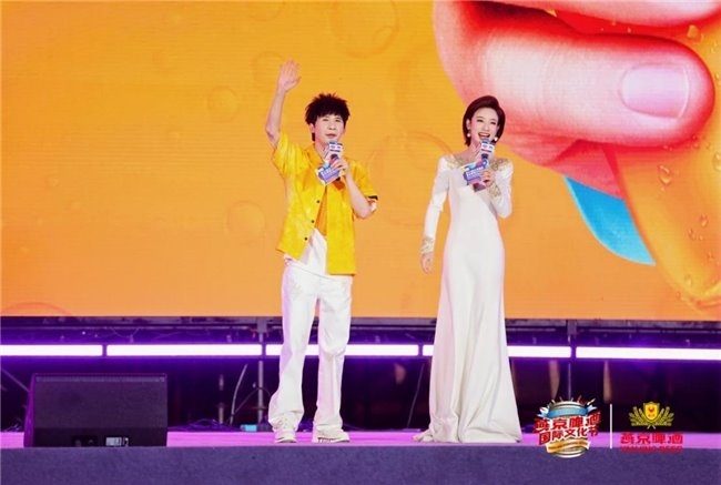 主会场开幕式,璀璨群星,轮番登台,燕京啤酒品牌代言人、国民偶像关晓彤倾情献唱《有你就有世界》;燕京倍斯特嘉槟品牌代言人、深受观众喜爱的“人间弹幕机”大张伟,结合倍斯特嘉槟产品特点,改编并演唱的《倍儿爽》,正式授权为倍斯特嘉槟品牌广告曲。