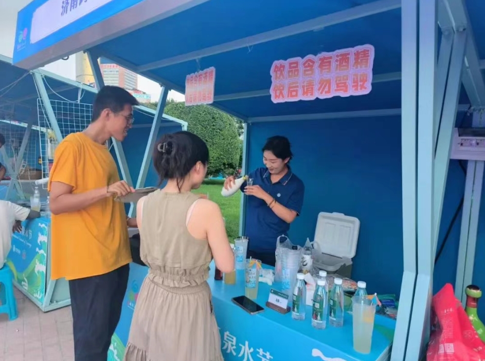 在泉水市集的核心位置,以趵突泉·泉香358为基酒调制的“泉香金菲士”成为全场焦点。泉香白酒与鲜果、气泡水碰撞后焕发出的清冽回甘与轻盈口感,展现出传统白酒与新时代饮用方式的完美融合。这一杯杯特调鸡尾酒,恰似一条连通传统与现代的味觉桥梁,巧妙化解了年轻群体对传统白酒的刻板印象。当“白酒还能这样喝!”的惊叹在人群中传递,趵突泉酒业以创新姿态,悄然解锁了品牌年轻化的味蕾密码。