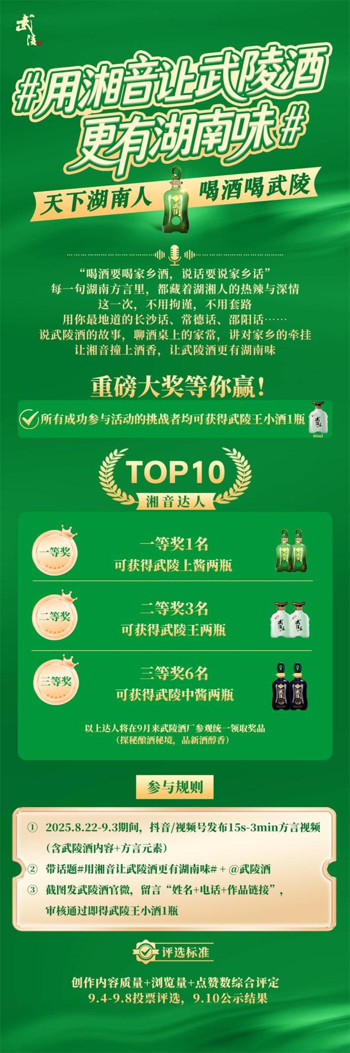 有奖征集丨用湘音让武陵酒更有湖南味 参与活动赢武陵酒