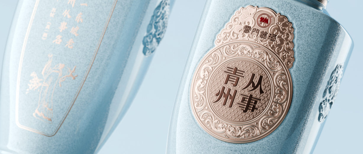 从产品设计上来看,“青州从事”系列酱酒整体以“青”色为主色调,天青色、石青色、天水青等色彩的运用,既呼应了“青州”之名,又象征着酿造环境的“青山绿水”,充分体现了高雅、唯美的东方韵味,在造型细节上,透露出中华文化的深厚底蕴。