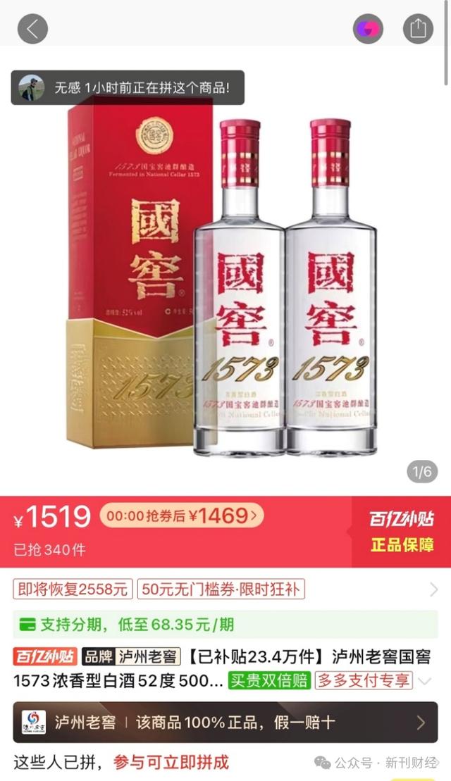 终端市场价格态势变动则更为复杂,以国窖1573为例,线下门店售价普遍维持在900元左右,而线上平台却出现明显价格松动。例如,某主流电商平台上双瓶套装在叠加优惠后低至1469元,实际单瓶价格仅约734.5元,与批价形成“倒挂”。这一现象清晰指向公司正通过线上渠道实施“降价换量”的促销策略。