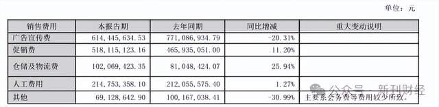 从财务策略来看,公司似乎在市场推广方面有所保留。广告宣传费同比减少20.31%,降至6.14亿元,尽管官方解释是“更聚焦”,但同步下调线上和线下广告费用,客观上显示出公司投入力度的收缩。同时,销售费用中的其他支出也因会务费等减少而降至0.69亿元,导致销售费用整体降低6.86%。这种“节流”举措,在一定程度上反映出公司当前保守的市场姿态。