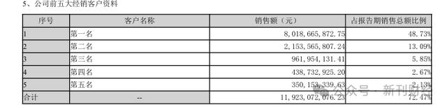 此外,在渠道布局方面,公司2025年上半年对前五大经销商客户的销售收入达119.23亿元,占报告期内总销售额的72.47%。这一比例较2024年同期的67.28%进一步上升,显示出客户集中度持续提高。其中,报告期内仅第一大客户就贡献了48.73%的销售额。