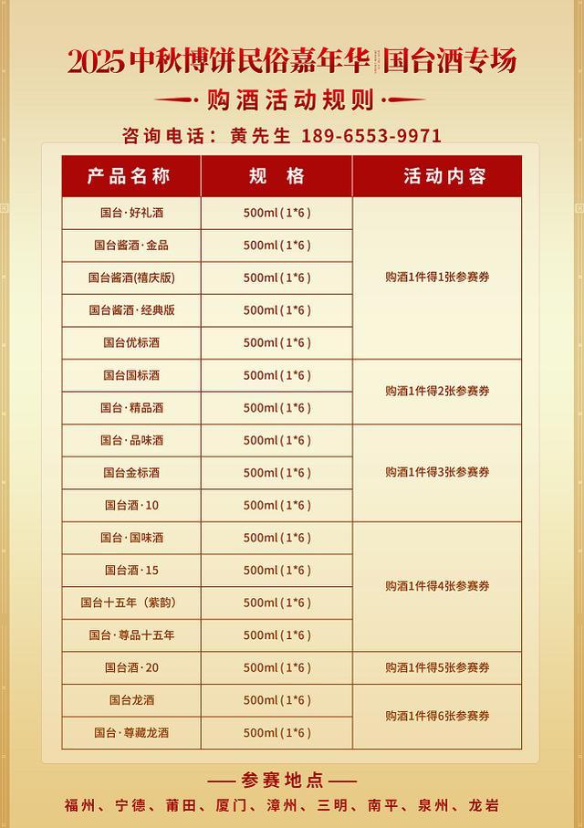 国台酒连续三年在福建举办博饼赛,今年更有6部靓车等你来博