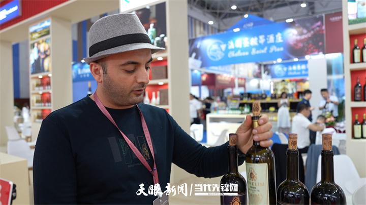 格鲁吉亚展商乔治向记者介绍葡萄酒