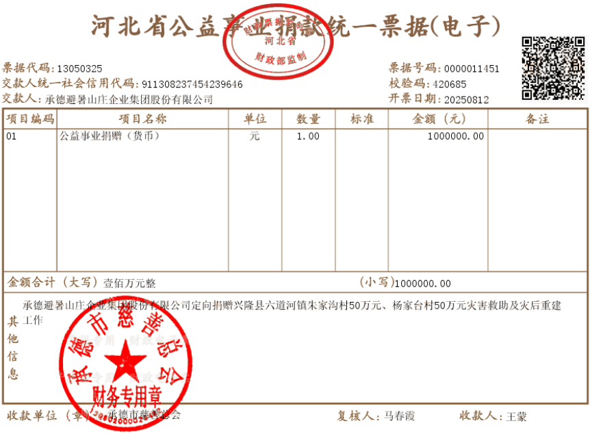 100万元的背后,是山庄集团对家乡的深情,是对社会责任的坚守,更是对"取之于社会,用之于社会"理念的生动实践。