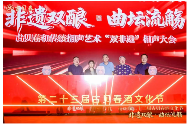 9月的山东齐河金风送爽,位于欧乐堡度假区的齐河坤和国际酒店巍峨屹立,气势磅礴。9月16日,第二十三届古贝春酒文化节在这里盛大开幕。著名相声表演艺术家、国家级非遗传承人、古贝春品牌形象代言人赵炎先生携著名相声演员郑健、方清平、贾旭明等中国广播说唱团演员,为节日献上了一台主题为“非遗双酿•曲坛流觞”的古贝春古法酿酒技艺和传统相声艺术“双非遗”盛典。