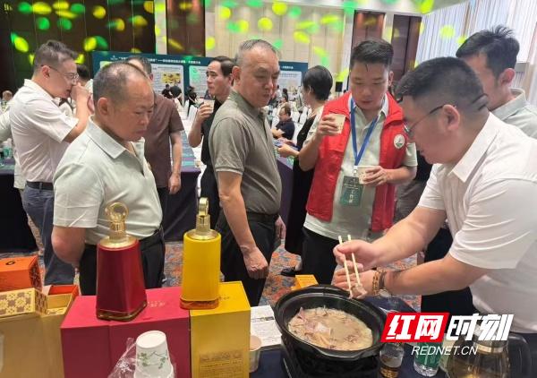 活动现场精英荟萃、气氛热烈,煌礼记展区陈列的特色黄精酒产品成为焦点。据企业总裁白丽可介绍,旗下黄精酒不仅选料上乘、工艺精湛,更巧妙融入湖湘文化元素,实现传统与现代的完美结合,是契合现代大众健康养生需求的明星产品。