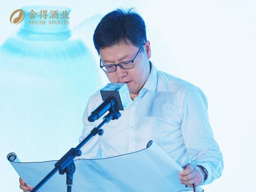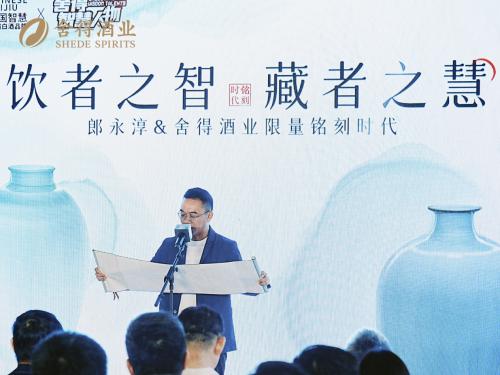 活动期间,舍得酒业总裁唐珲从品牌战略维度解读了本次合作的深刻意义。他指出,本次舍得酒业与郎永淳老师的携手共创,就是源于对舍得“智慧”的深度认同,是一场价值观的碰撞与情怀的共鸣。今天要发布的这两款产品,不仅仅是一瓶酒,也是一段岁月的见证。我们期望用高品质老酒的醇与香,让大家对时间的体会和珍视变得更加具象,变得更有形、有色、有味。
