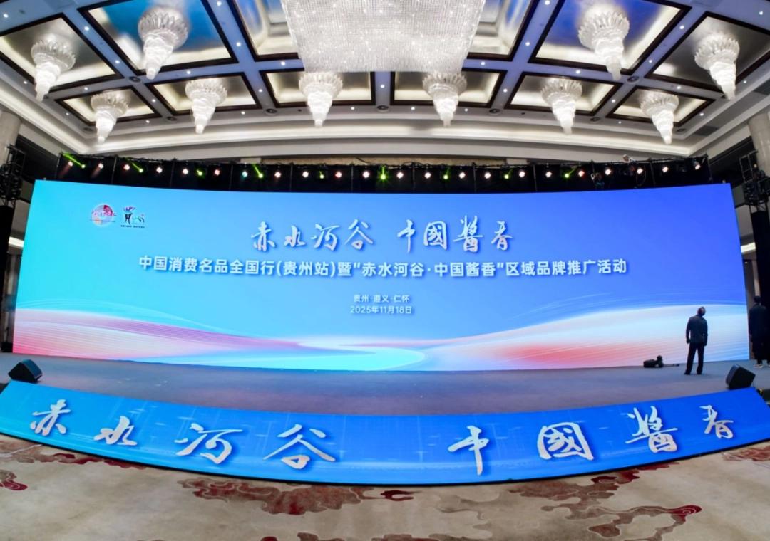 11月18日,仁怀市茅台镇茅台国际大酒店内嘉宾云集,中国消费名品全国行(贵州站)暨“赤水河谷 中国酱香”区域品牌推广活动正式启幕。