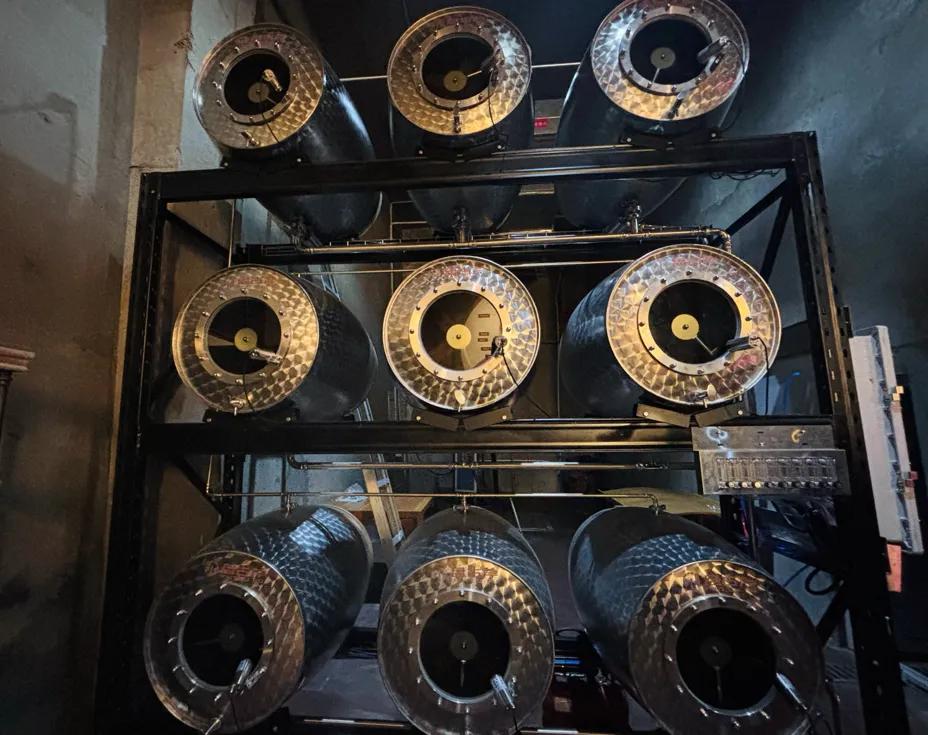 “好酒离不开好的容器。优质橡木桶不仅能柔化单宁、吸附杂质,还可赋予酒体香草、烟熏、椰子等复杂香气。”刘荣刚轻抚桶身说,“葡萄酒的陈酿需要稳定的温湿度环境,为此我们引入了智能酒桶——其内部为橡木材质,外部覆以不锈钢壳,通过智能系统,能够实时调节温度、湿度等指标,在保住葡萄酒风味的同时,进一步提升了产品质量的稳定性。”