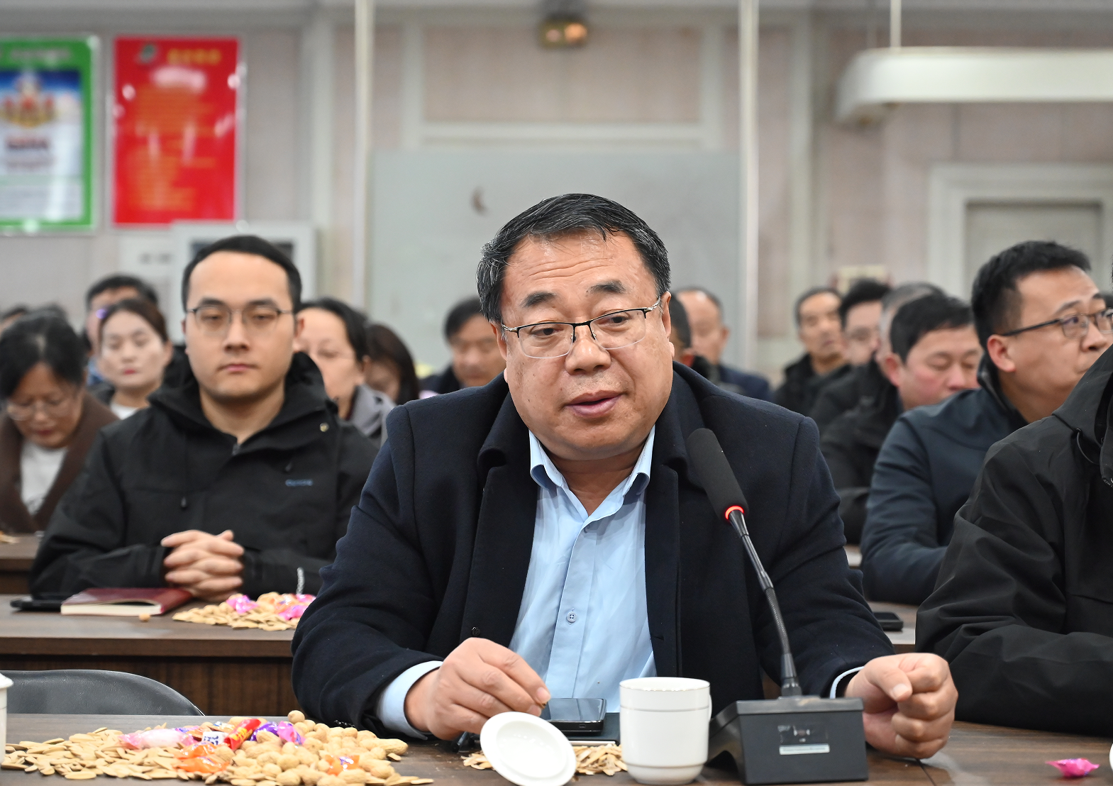 会议伊始,胡福东董事长代表集团两委向全体职工及家属致以新春祝福,对大家春节期间坚守岗位、保障供应的辛勤付出表示衷心感谢。他指出,在刚刚过去的春节假期,各销售大区深入终端开展助销活动,物流体系高效运转,酱香、浓香系列产品供应充足,有力保障了节日市场需求。特别是正月初二至初六期间,销售团队放弃休假、连续作战,累计出动百余人次,助销数千箱产品,以专业服务赢得终端客户广泛好评,为实现首季“开门红”奠定了坚实基础。