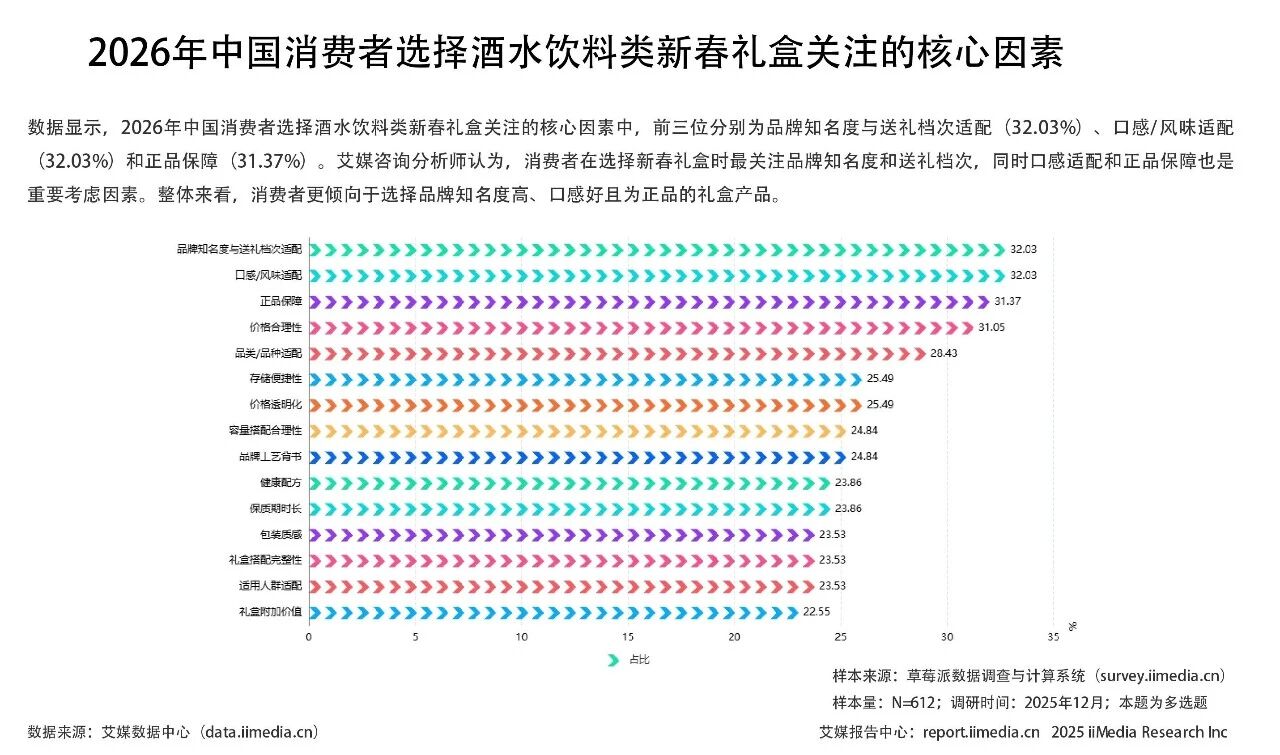 艾媒咨询最新发布的《2026年中国新春礼盒消费行为调研数据》显示,零食点心和酒水饮料类成为新春礼盒消费最受欢迎的品类,占比均超过40%。“品牌”是消费者购买酒水饮料礼盒首要考量的因素。这也解释了为何在行业整体收缩的市场中,名酒的光瓶酒或低线产品仍能脱颖而出。汾酒的玻汾、五粮液的尖庄等,都凭借其强大的品牌背书和亲民价格,稳稳承接了这波由场景变迁带来的红利。