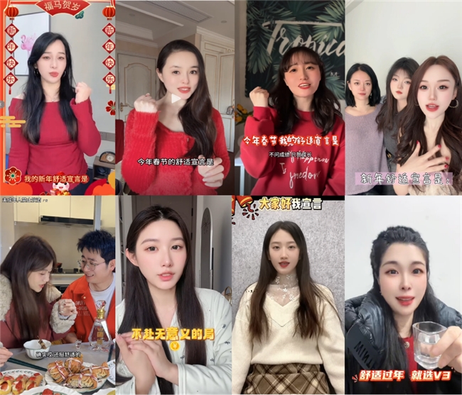 情感共鸣的精准落地,是国缘V3此次营销的第一个核心亮点,也是其打破“酒桌营销”刻板印象的关键一步。不同于多数品牌春节TVC的温情套路,国缘V3推出的《春节舒适指南》TVC,选择直面当代人春节的社交痛点——催婚、问薪、过度劝酒,用真实场景引发用户共情,最终落脚于“喝酒回归轻松本质”的品牌主张。这种不回避痛点、不刻意煽情的表达,让“舒适过年”不再是空洞的祝福,而是可感知的生活愿景。更具价值的是,TVC并非孤立的内容传播,而是与抖音#舒适中国年 V3庆团圆#、#舒适新年,我的宣言#话题挑战形成联动,让品牌主张从“单向传递”变成“双向互动”。用户自发创作的UGC内容,不仅丰富了“舒适团圆”的场景表达,更让国缘V3的品牌理念渗透到年轻群体中,实现了“情感破圈”——这背后,是国缘V3对当代春节社交情绪的深刻洞察,更是对白酒品牌“去功利化”情感沟通的成功探索。