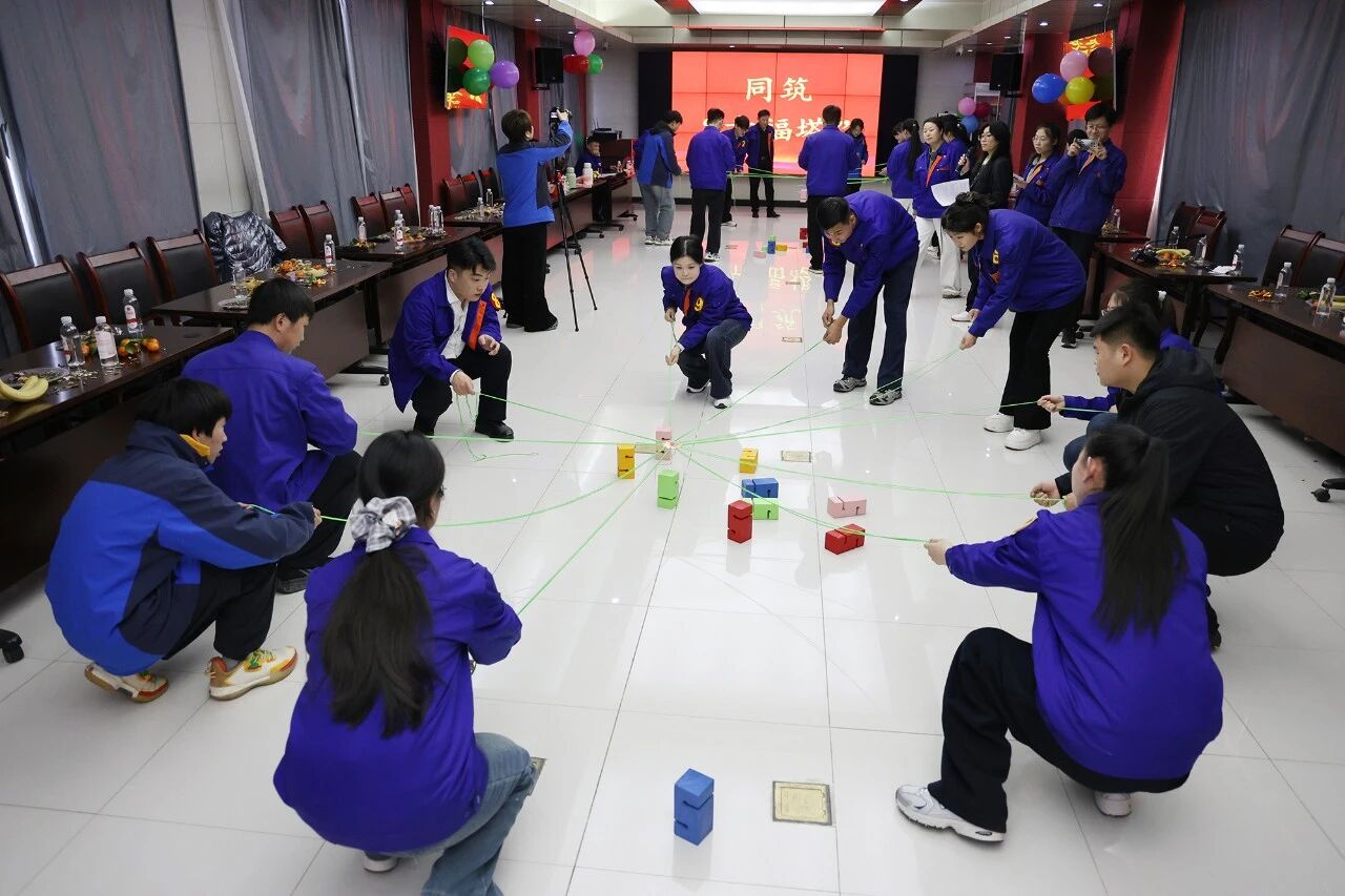 活动在热情洋溢的舞蹈《桃花朵朵开》中拉开序幕,青春的律动瞬间点燃全场。随后,在轻松愉快的音乐中,精心设计的互动环节依次展开。从考验反应力的“看谁有水平(瓶)”到需要默契配合的“‘缘’来是这样”,再到将活动推向高潮的团队协作游戏“同筑幸福塔”,青年员工们在轻松氛围中放下拘谨、积极互动,现场笑声不断。一个个趣味横生的游戏,不仅拉近了彼此的距离,更在无形中培养了团队的默契与信任。