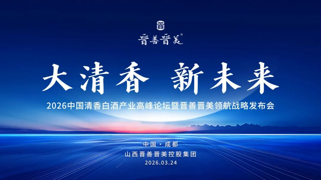 蓉城聚首,共话清香新未来;战略启航,共筑行业新辉煌。3月24日,“大清香·新未来”2026中国清香白酒高峰论坛暨晋善晋美领航战略发布会在成都隆重举行。