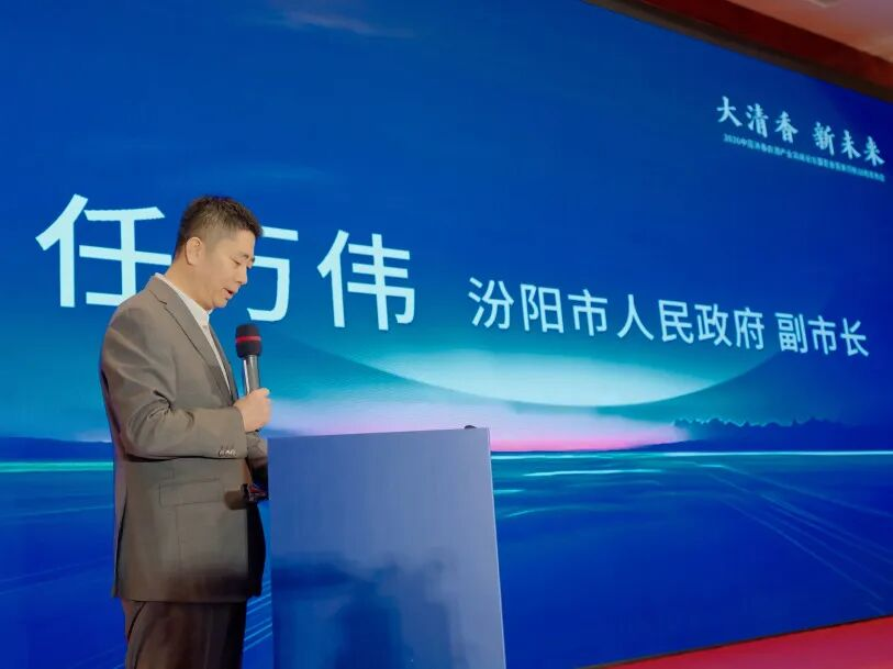 汾阳市人民政府副市长任万伟登台致辞,深度解读中国清香白酒核心产区 —— 汾阳的酿造优势与发展规划。