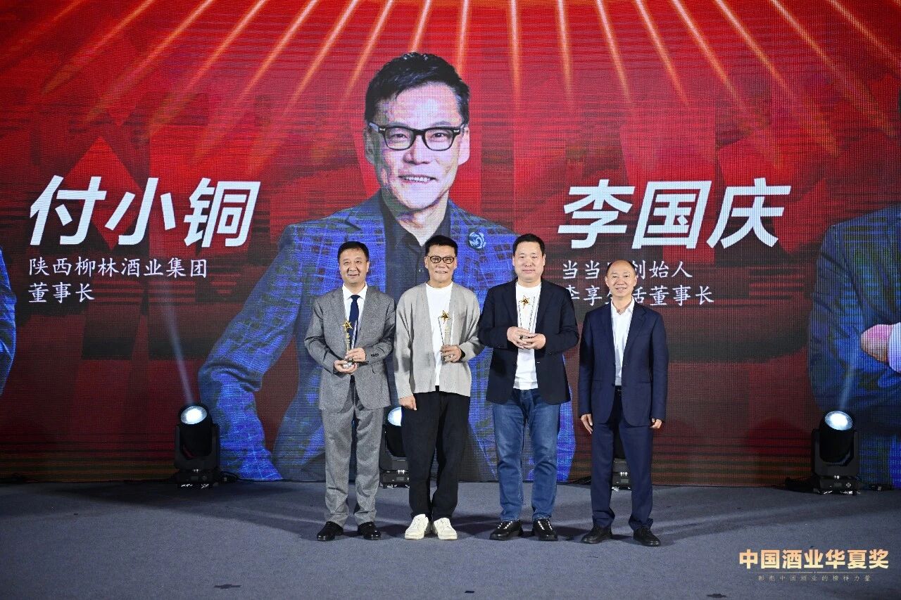 在全场期待中,颁奖环节迎来高潮,当当网创始人、李享生活董事长李国庆,陕西柳林酒业集团董事长付小铜,厚朴投资创始人、HOPE创学院创办院长、向日魁酒业集团创始人李书文三位嘉宾,联袂获得2025“中国酒业年度人物”。