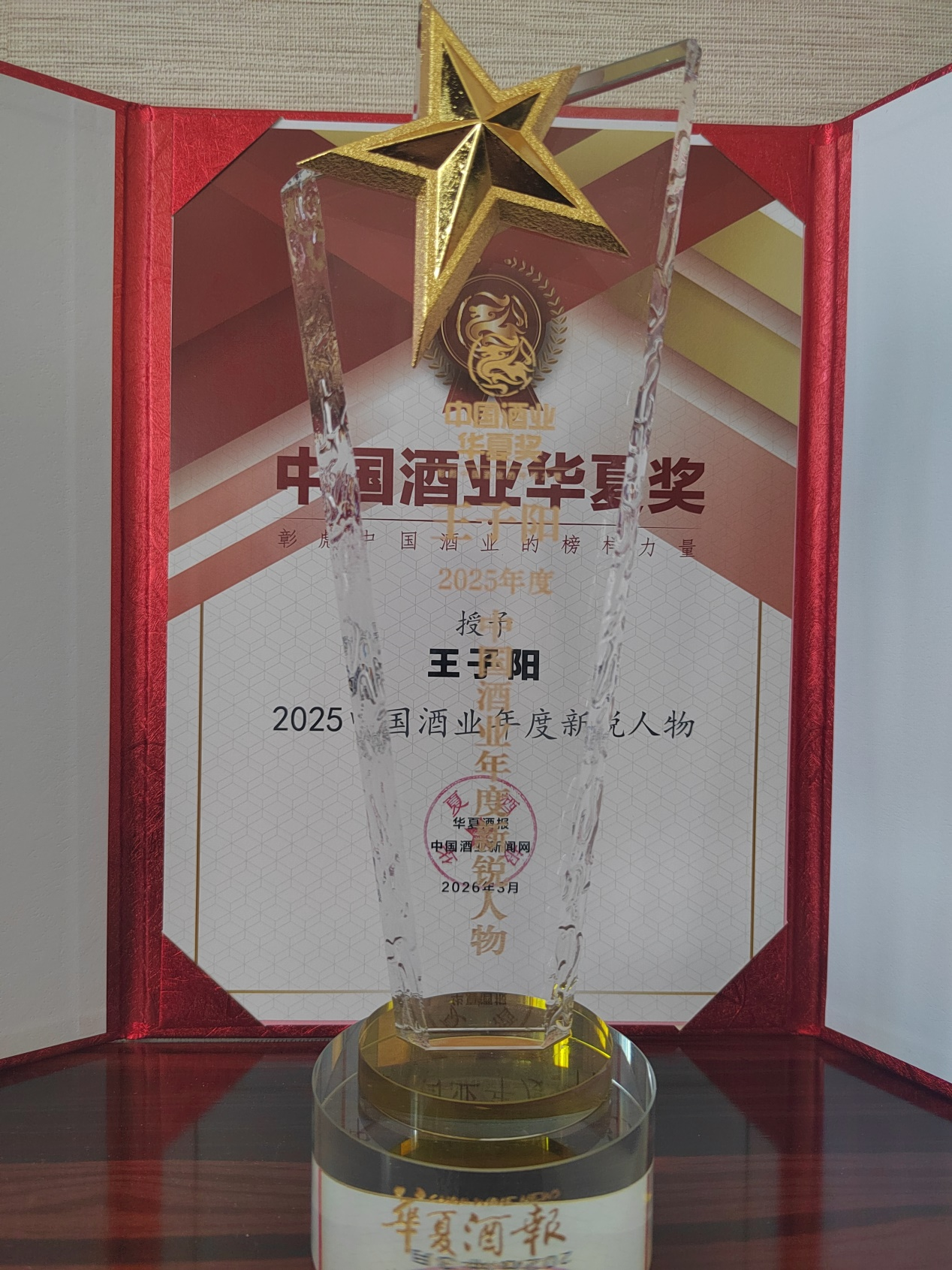 年度新锐人物奖旨在表彰在酒业创新发展、品牌建设、市场开拓等方面表现突出的青年领军者。评审团从创新力、企业成长性、行业影响力、品牌责任感等多维度综合评定,王子阳在众多参评者中脱颖而出,充分体现了其个人领导力与王家烧坊品牌所获得的行业认可。