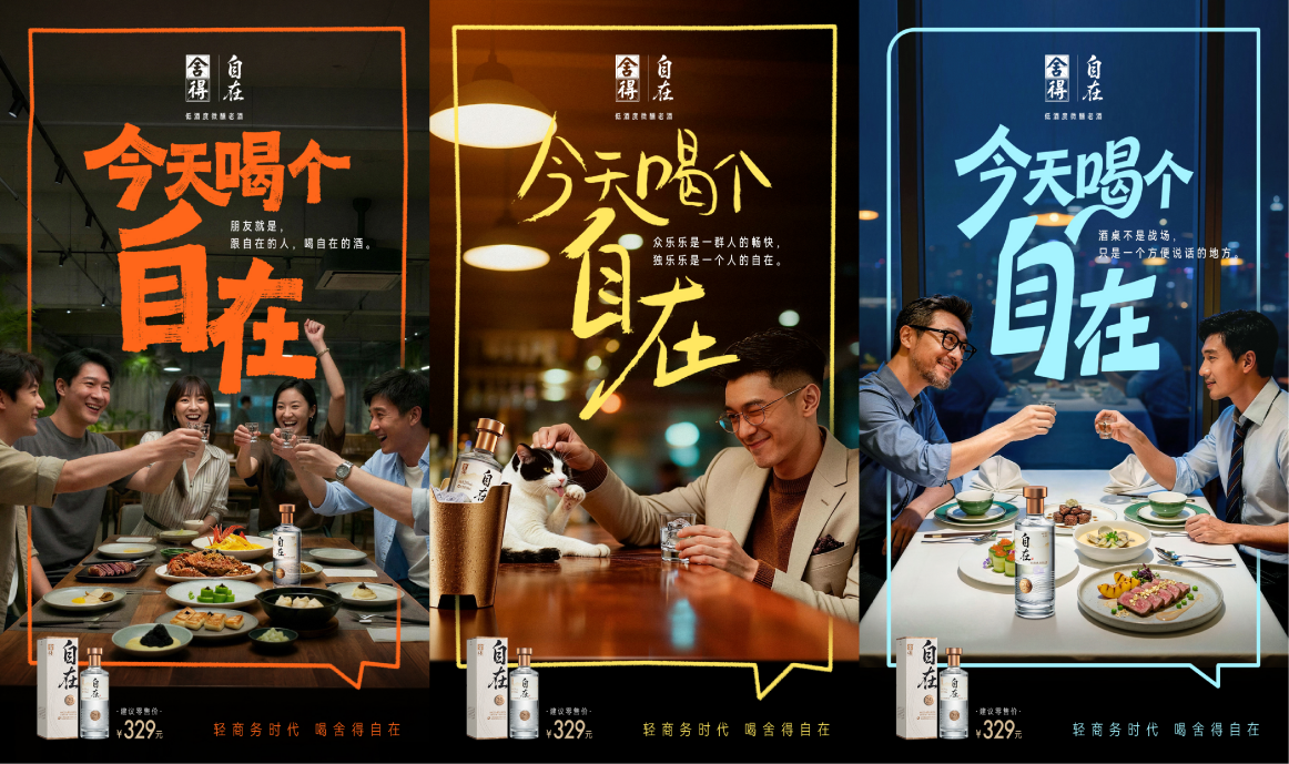 从痛点切入、到态度确立、再到场景落地,舍得自在通过创意大片构建了完整的叙事闭环,精准回应了当代人群对自在社交的深层渴望,以“新酒桌文化”在轻商务赛道上率先建立起清晰、有态度的品牌认知。