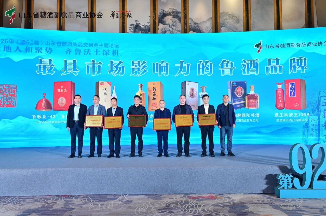 “天地人和聚势·齐鲁沃土深耕”主题论坛暨鲁酒品牌颁奖典礼在糖酒会期间同步举行,康王御液王1968凭借卓越的酿造品质、精准的市场定位与创新的产品理念,成功斩获“山东省最具市场影响力的鲁酒品牌”称号。