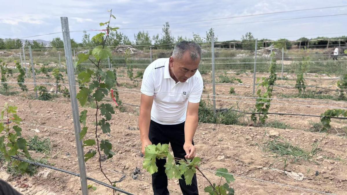 印象戈壁酒庄董事长富强在标准园中介绍。鞠秀琦摄