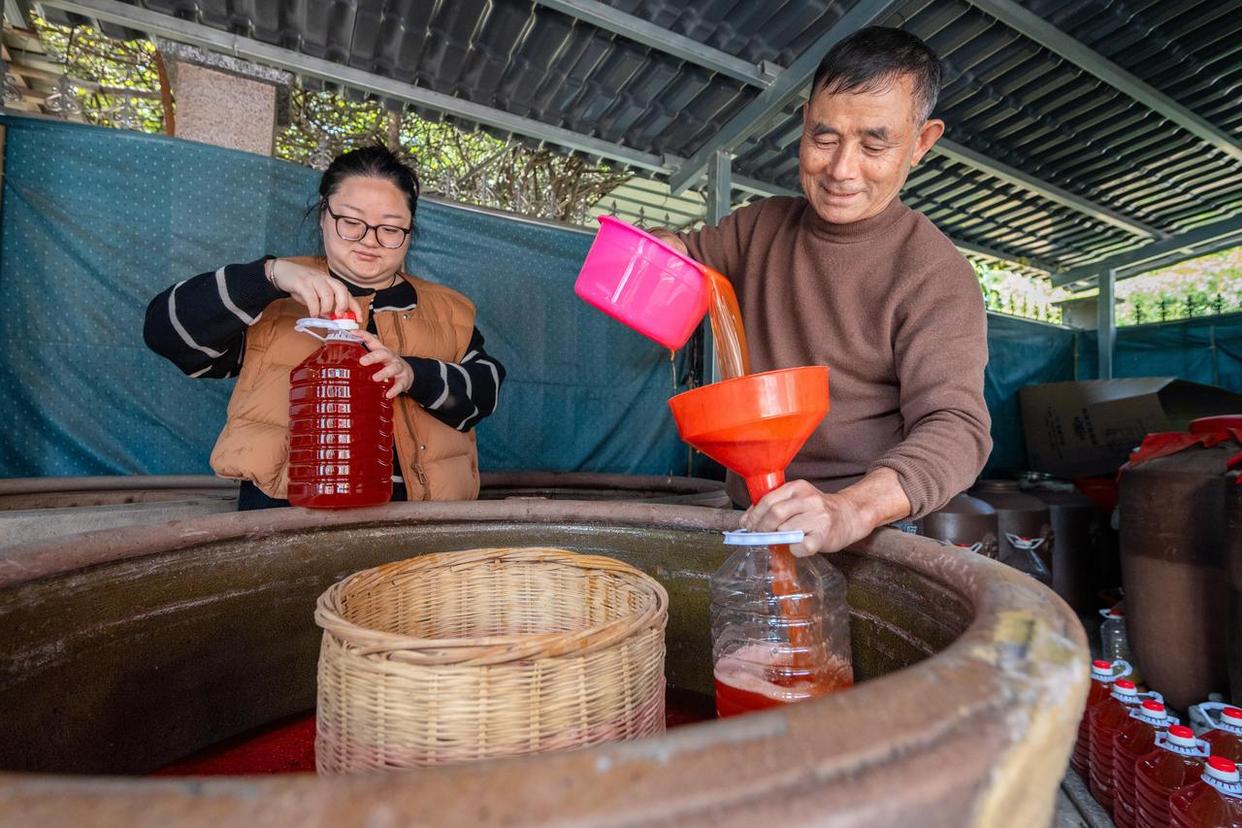 11月24日,湖州市长兴县夹浦镇月明村,村民叶山林通过传统纯手工工艺酿造红曲酒。 江南一带,每年的阳历11月至春节期间,有酿造红曲酒的习俗,寓意新的一年红红火火、顺风顺水。红曲酒