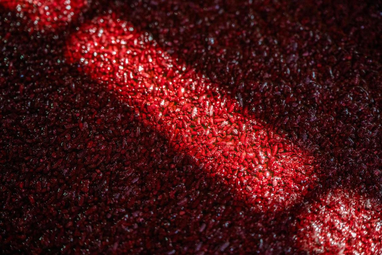 发酵完成的红曲酒晶莹剔透,艳丽无比。