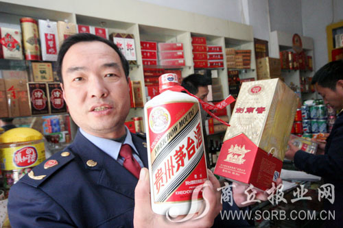 为规范五一节前白酒市场,自4月18日开始,商丘市工商局与茅台、五粮液、剑南春、泸州老窖等多家名酒厂家联手,对商丘市名烟名酒店开展白酒市场专项整治活动。截至24日,共查获假冒茅台412瓶、假冒五粮液465瓶、假冒剑南春353瓶、假冒泸州老窖287瓶,另有其他假酒460瓶