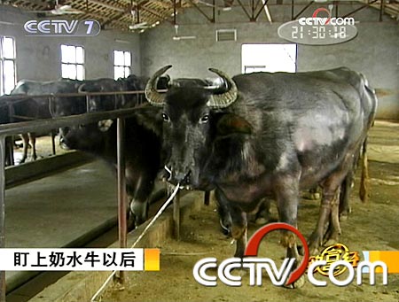 广西水牛奶的高价让丁功建兴奋不已。他盘算着,一天一头奶水牛产10斤奶,按一斤四元来算,抛去成本10元,能赚30元。如果1天挣2千元,只需养60头牛。更让他兴奋的是,他发现了广西奶水牛的一个秘密。