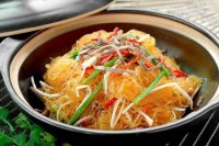 粉丝是人们喜欢吃的菜肴之一,但不宜多吃。在加工制作粉丝的过程中,粉浆中加入了0.5%左右的明矾,随着粉...