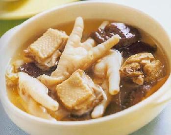 非常考究的一道菜,龙须是活鲤鱼的鱼须,凤爪是活鸡掌下正中的一块精肉。具体烹饪方法不详。 评点:吃这道