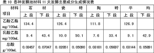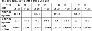 从表8可以看出,在7天发酵中,酯、酸含量均有上升,石材含量最高。