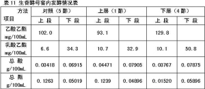 取250kg混合糟,接入固体生香酵母10.6亿/g,10kg分别于发酵池的上层和下层7天发酵试验(见表11)。