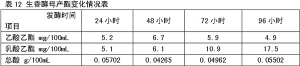 从表11可以看出,窖内发酵乙酸乙酯、乳酯乙酯和总酸上升幅度很小,说明生香酵母入窖发酵这一方法达不到该项目提高乙酸乙酯含量的要求。