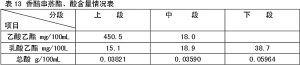 蒸酒时,将培养成熟的香醅于甑子上层串蒸,每甑串香醅150-200kg ,分上、中、下三段摘酒贮存,串蒸效果见表13。