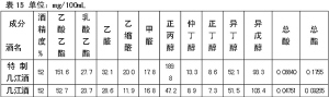 从表15可以看出,“金江津”酒与原“几江”白酒比较,主要香味成分和总酸大幅度提高,其它微量成分也相应增加,达到了预期的目的。