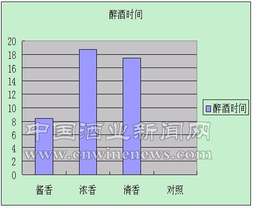 ①由于各香型酒酿造工艺不同,其酒体中各微量成分的化学构成亦不相同,从而对小白鼠的醉酒效果不同。