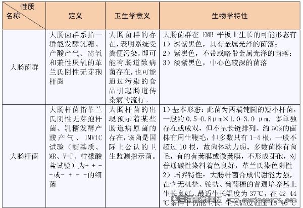 大肠菌群与大肠杆菌的定义范围不同,其体现的特性也有差别,主要区别见表1所示。