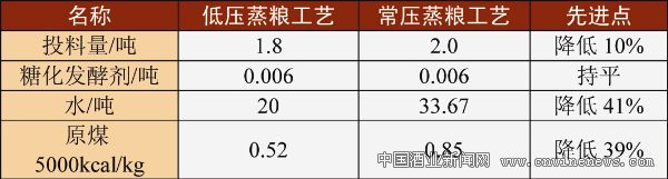 5.低压蒸粮清洁生产技术与传统技术参数比较(表一)
