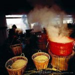 4.1 清蒸续米查:清蒸以去除粮食中的邪杂味,增加产品的净爽感,突出了产品的淡雅风格。续米查以继承传统工艺,有利于酒醅的发酵和香味成分的积累。