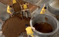 3、加水拌料:拌料用水为曲料量的26%—36%,将水用蒸汽加热到40℃左右进行拌料,拌料均匀后使原料温度达到23℃—26℃,要求混合后以捏成团不粘手为原则,有利于原料均匀吸水。