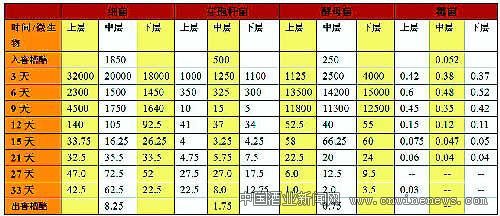 这是由于发酵过程中有酸、醇酯类等物质的产生,不断地增加了糟醅的水分,水分向下渗透所引起的;淀粉含量在发酵过程中不断的减少,前期上层糟醅中的淀粉消耗明显要多于中、下层糟醅,这是由于发酵前期窖池中含有氧气,好氧细菌大量繁殖,上层糟醅中的微生物多于中、下层微生物数量,微生物代谢旺盛所致;酸度在发酵过程中一直都是升高, 前期酸度增加的缓慢,到了发酵后期快速增加;酒精度的变化趋势为:先上升到达一个峰值后缓慢的下降,上层糟醅的酒精度最先到达峰值后下降, 随后是中层糟醅酒精度,最后是下层糟醅酒精度;窖池中的各部位的发酵状况是不一样的。
