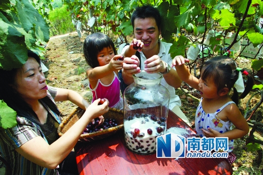 广州市幸福葡萄园的江园主,具有多年自酿葡萄酒的经验,她告诉记者,如果生产过程合理,自己酿的葡萄酒醇香、放心,她自己平时酿造的葡萄酒也会提供给往来的客人品尝。